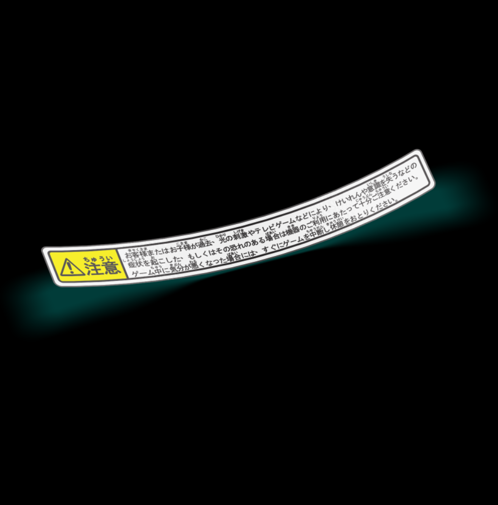 This is a single epilepsy warning sticker in Japanese that is commonly found on arcade machines. This sticker is 5.9" x 0.7" printed on vinyl with a gloss laminate rated for outdoor use.