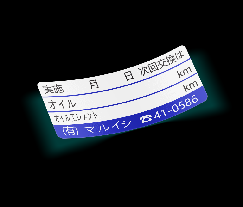 One mini slap replica of an oil change interval / maintenance minder sticker found inside of a Kei truck.